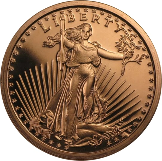Zeitloses Design: Inspiriert von der berühmten Saint Gaudens Goldmünze, ein Stück Geschichte in Kupfer