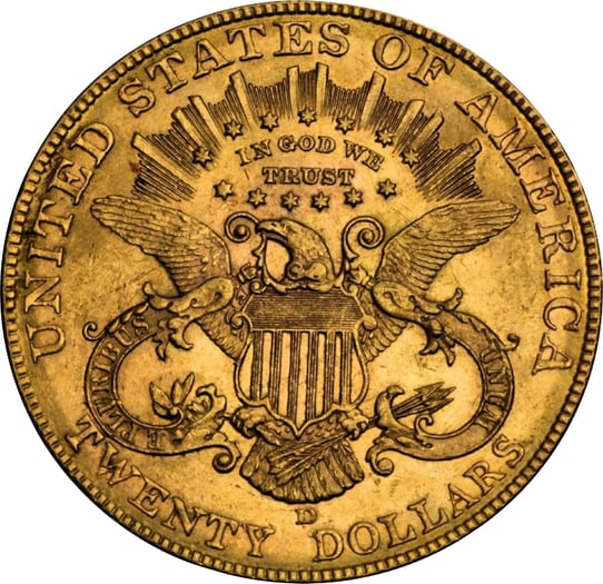 Der Eagle wurde erstmals 1795 als offizielles Zahlungsmittel von der unter anderem hierfür gegründeten US Mint ausgegeben. Die 20$ Münze wurde in den Jahren 1850 bis 1907 hergestellt.