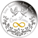 Romantisches Design: Liebevoll gestaltete 1 Unze Silbermünze mit Tauben-Motiv und Unendlichkeitssymbol, perfekt als Geschenk für besondere Anlässe