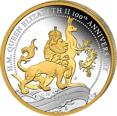 1 Unze Silber 100. Geburtstag Queen Elizabeth II. 2026 (Auflage: 1.926 | teilvergoldet | Polierte Platte)