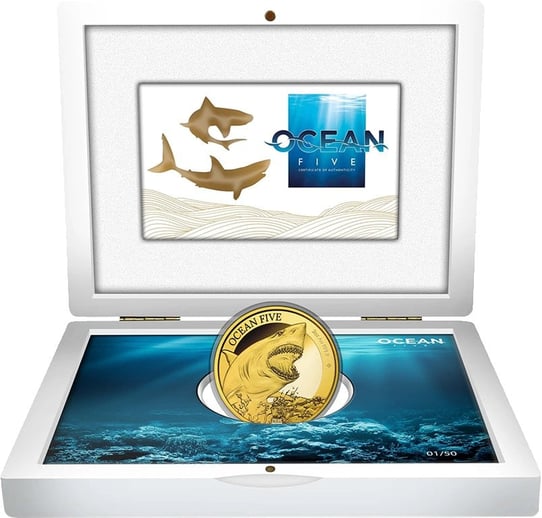 Hier können Sie die 2 Unze Gold Ocean Five Delfin 2021 PP (Auflage: 50 | Polierte Platte bestaunen, jedoch war diese wundervolle Münze bereits kurz nach Verkaufsstart ausverkauft. Sichern Sie sich mit dieser 2 Unze Gold Ocean Five Weißer Hai 2022 PP (Auflage: 50 | Polierte Platte) eine der auf 50 Stück limitierten Ausgabe, die ein besonderes Wertsteigerungspotential besitzt.