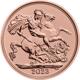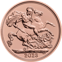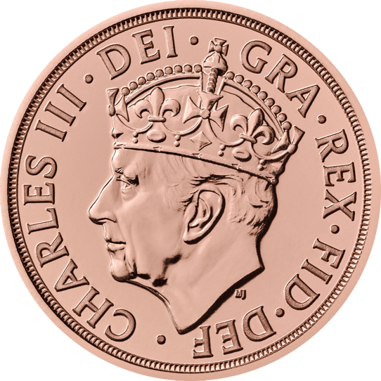 • Motiv: Die Münze zeigt auf der Vorderseite das klassische Motiv des drachentötenden Heiligen Georg, entworfen von Benedetto Pistrucci. Die Rückseite zeigt ein Porträt des britischen Königs Charles III mit Krone und die lateinische Inschrift "CHARLES III DEI GRA REX FID DEF", was übersetzt "König Charles, von Gottes Gnaden König und Verteidiger des Glaubens" bedeutet.