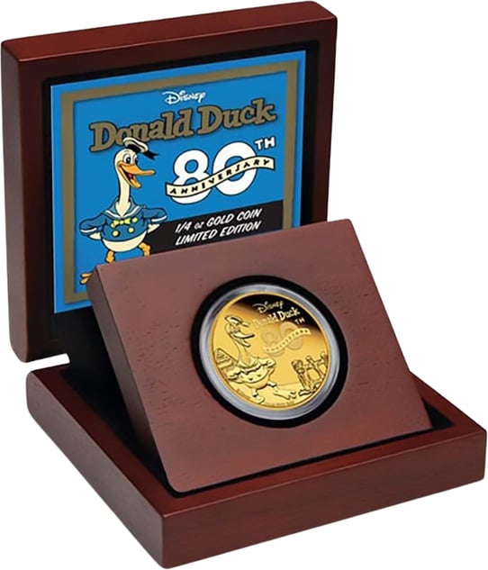 Die Viertel-Unze Donald Duck Goldmünze ist in einer streng limitierten Auflage von nur weltweit 1.000 Münzen aufgelegt worden.