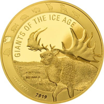 1 Unze Gold Giganten der Eiszeit – Riesenhirsch 2019 (Auflage: 1.000 | Polierte Platte)