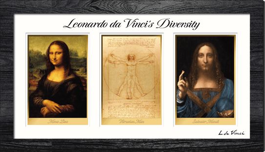 Motiv: Auf den Vorderseiten dieser Meisterwerke sind drei ikonische Kunstwerke Leonardos zu sehen: die geheimnisvolle Mona Lisa, das spirituelle Salvator Mundi und der revolutionäre Vitruvianische Mensch. Jedes Werk wurde mit größter Sorgfalt coloriert, um die Schönheit und Tiefe der Originale einzufangen.