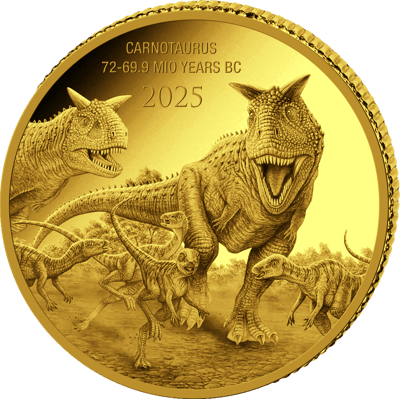 Faszinierende Goldmünze mit prähistorischem Motiv - Carnotaurus 2025