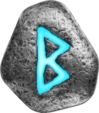 Faszinierende Berkanan-Rune mit mystischem UV-Leuchteffekt in archaischer Runenstein-Optik