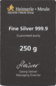 Technische Details des 250g Silberbarren Heimerle und Meule