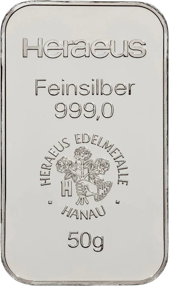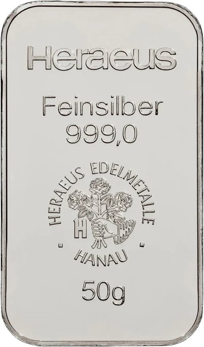 50g Silberbarren Heraeus – Deutsche Präzision für Ihren Vermögensschutz