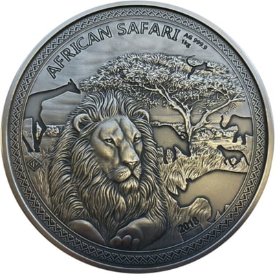 1kg Silber African Safari Löwe 2018 (Auflage: 100 | Antik Finish | Zertifikat Nr. 001)