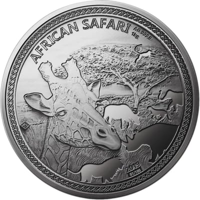 1kg Silber African Safari Giraffe 2019 (Auflage: 100 | Antik Finish | Zertifikat Nr. 001)