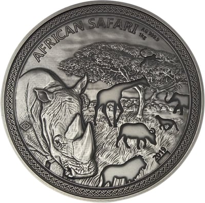 1kg Silber African Safari Nashorn 2019 (Auflage: 100 | Antik Finish | Zertifikat Nr. 001)