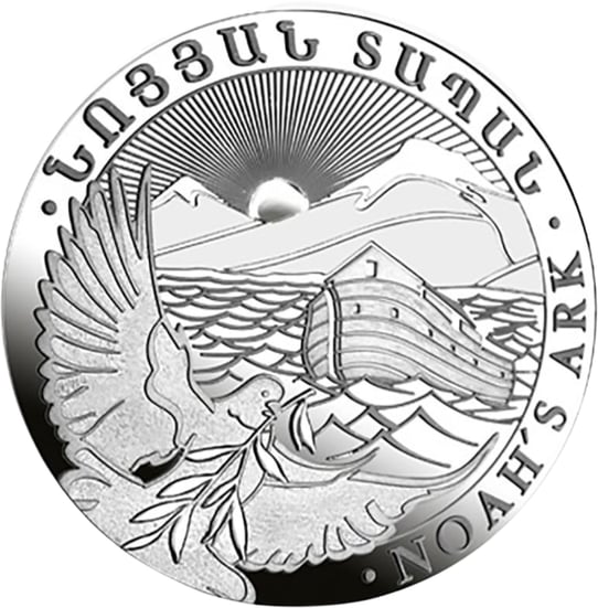 Die Silber Arche Noah 2012 Münze ist Teil der begehrten "Arche Noah" Serie. Das Motiv erzählt eine der bekanntesten biblischen Geschichten und vermittelt eine Botschaft des Neuanfangs und der Hoffnung. Die Vorderseite der Münze ziert das Staatswappen von Armenien, während auf der Rückseite die Arche Noah mit der Friedenstaube und dem Ölzweig zu sehen ist.