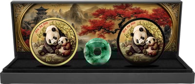 China Panda Set 2024 (Auflage 50 | teilvergoldet | mit Jadering | Ruthenium)