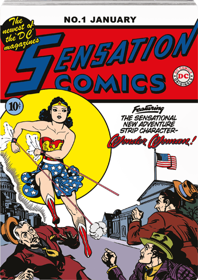 • checkmark greenNachbildung des Sensation Comics #1 Covers