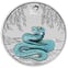Beeindruckende Farbveredelung der Schlange in türkis-blauen Tönen auf 5 Unzen reinstem Silber