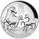 Als siebte Ausgabe der Australian Lunar Series III zeigt die Münze eine atemberaubende Darstellung einer Stute mit ihrem Fohlen. Die dynamische Komposition fängt die ungezähmte Energie und Anmut dieser majestätischen Tiere ein. Im Hintergrund erheben sich imposante Bergketten, die einen dramatischen Kontrast zu den weiten Graslandschaften bilden. Das traditionelle chinesische Schriftzeichen für "Pferd" sowie das charakteristische "P"-Logo der Perth Mint runden das kunstvolle Design ab.