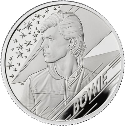 Bei der Gestaltung der Münze setzte die Royal Mint auf ein klassisches Design, welches den Künstler im Portrait zeigt. Im Hintergrund sind ein Blitz und Sterne zu sehen welche sich auf die Singles Rebel und Black Star beziehen. Unter dem Portrait ist noch der Schriftzug Bowie zu lesen.