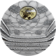 Diese Münze führt Sie in die aufregende Welt der Oper – ein klassisches Motiv der Kunst und Kultur! Statt Ihnen die sicherlich ebenfalls beeindruckende Architektur vor Augen zu führen, stellt das detaillierte Werk das gefühlvolle Ambiente aus der Sicht des Zuschauers dar. Hauptmerkmal und außergewöhnlicher Blickfang der Münze ist der eingefasste „Kristallkronleuchter“, der die angespannte Stimmung im Saal vor Eröffnung der Spiele mit seinem Glanz überstrahlt. Umrahmt wird der sorgfältig eingefasste Kristall von der detaillreichen Abbildung der Deckendekoration mit gar erkennbaren Malereien. Die zahlreichen Zuschauerränge wiederum schließen das Bild nach unten in allen Einzelheiten ab.