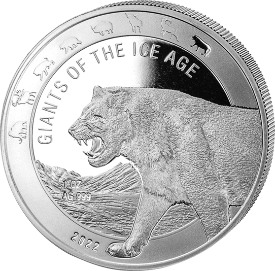 Diese Silbermünze gehört zur Serie Giganten der Eiszeit, die zu Ehren von bereits ausgestorbenen Tierarten eingeführt wurde. Als Motiv für die Vorderseite der Münze wurde der Höhlenlöwe ausgewählt.