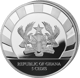 Auf der Rückseite ist das Wappen der Republik Ghana zu sehen. Zwei große Adler krallen sich an diesem fest. Darunter steht der Nennwert der Münze. Dieser beträgt 5 Cedis.