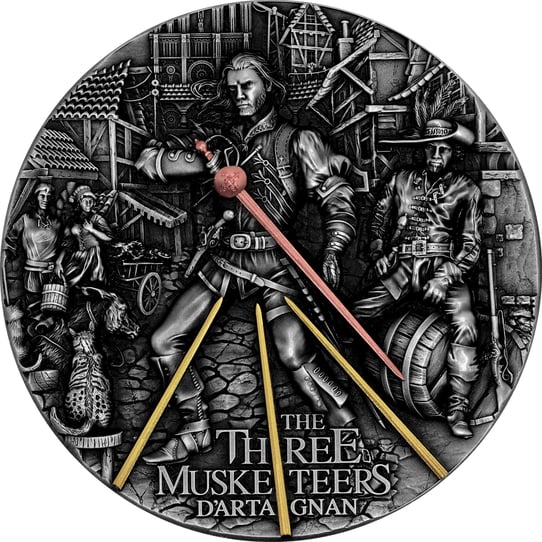 Diese hochwertige Silbermünze gehört zu einer Münzserie, die den drei Musketieren gewidmet ist. Die drei Musketiere stammen aus einem gleichnamigen Roman, der von dem französischen Schriftsteller Alexandre Dumas verfasst wurde. Der Roman erschien im Jahr 1844. Ihm folgten zwei weitere Bände: „Zwanzig Jahre danach“ und „Der Vicomte von Bragelonne oder Zehn Jahre später“. Der Titel „Die drei Musketiere“ war für den Roman eigentlich zuerst gar nicht vorgesehen, da der Autor den Titel nicht passend fand. Das lag daran, dass der Fokus des Romans eigentlich auf den sogenannten vierten Musketier liegt: Gascogner d’Artagnan. Der Roman spielt im Jahr 1625, also zur Regierungszeit des Königs Ludwig XIII.  Der junge Gascogner d’Artagnan macht sich auf nach Paris. Er hat das Ziel, sich den drei Musketieren anzuschließen. Seine Reise nach Paris verlief alles andere als glatt und unkompliziert. Doch als der junge Mann endlich in Paris angekommen war, wollte er gleich die Bekanntschaft mit dem Hauptmann der drei Musketiere machen: Monsieur de Tréville. Dieser erklärte Gascogner d’Artagnan jedoch, dass er ihm unmöglich einen Platz bei den drei Musketieren anbieten kann. Es ist Pflicht, gewissen Verdiensten nachgekommen zu sein, die dann nachgewiesen werden müssen. Nur dann besteht eine Chance. Doch in Paris trifft er auf die drei Musketiere und hilft ihnen zu einem grandiosen Sieg. Er wird zwar nicht offiziell Teil der drei Musketiere, aber ist von diesem Moment an ihr Freund.