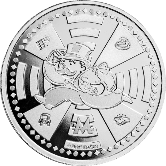 - Besonderheit: Erste offizielle Mr. Monopoly Münze aus reinem Silber