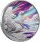 • Spektakuläre Polarlichter in lebendigen Farben über zwei Seehunden - ein emotionales Meisterwerk in Silber