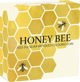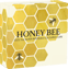 Die Vorderseite zeigt ein farbenfrohes Bienenpaar in beeindruckender Detailtreue. Die fleißigen Insekten ruhen auf den zarten Blütenblättern einer leuchtend rosa Margerite mit sonnengelber Mitte – ein Anblick, der die Schönheit der Natur einfängt. Im kunstvoll gestalteten Hintergrund sind weitere Honigbienen zu sehen, die emsig Nektar aus geöffneten Blüten und Waben sammeln. Diese lebendige Szenerie wird durch ein dekoratives Band mit der Inschrift "HONEY BEE" elegant umrahmt.