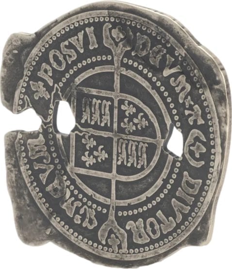 • Einzigartiges Motiv: Authentische Spanish Doubloon mit ausgestanzten Löchern im Antik-Finish