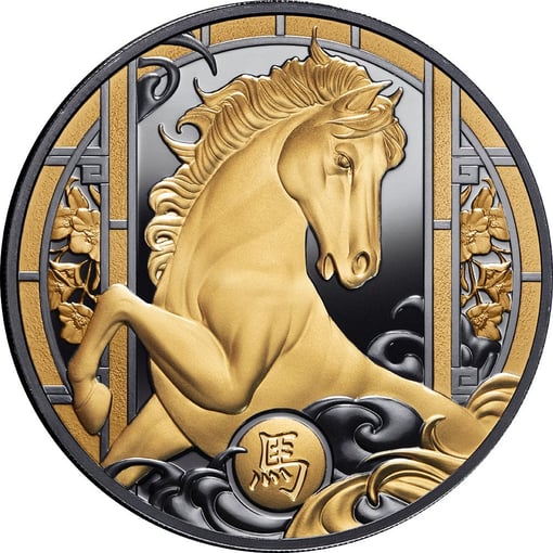1 Unze Silber Jahr des Pferdes 2026 (Auflage: 888 | teilvergoldet | Black Proof)