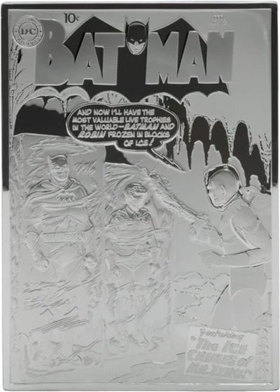 Die Münze reproduziert meisterhaft das legendäre Cover von Batman #121 aus dem Februar 1959. In atemberaubender Detailtreue zeigt sie Batman und Robin, gefangen in kristallinem Eis – ein Moment, der Comic-Geschichte schrieb. Die Geschichte "The Ice Crimes of Mr. Zero!" markierte die Geburtsstunde eines der berühmtesten Batman-Schurken: Mr. Freeze.