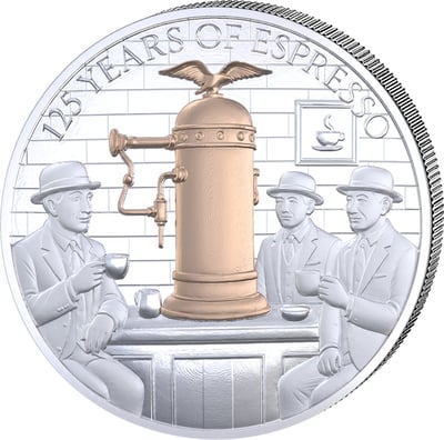 2 Unze Silber 125 Jahre Espresso 2026 (Auflage: 500 | Polierte Platte)
