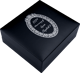 • Ovale 2-oz-Silbermünze in 999,9er Feinsilber mit Filigranarbeit, Kristallen und Prooflike-Qualität