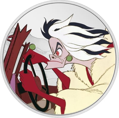 1 Unze Silber Disney 101 Dalmatiner – Cruella de Vil 2022 (Auflage: 2.000 | coloriert | Polierte Platte)