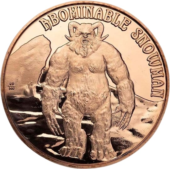 Detailreicher Yeti auf hochwertigem Kupfer geprägt