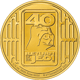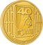 Auf der Motivseite dieser Goldmünze ist eine rechteckige Form eingeprägt, die aussieht wie ein Kinoplakat. In der Form ist mittig der Helm des Bösewichts Darth Vader™ abgebildet. Darüber steht die Zahl 40. Unter dem Helm ist der Schriftzug „Return of the Jedi™“ eingeprägt. Dabei handelt es sich um einen Film aus der bekannten Star Wars™-Reihe.