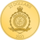 Die Wertseite der Münze zeigt das „Public seal of Niue“. Darüber steht der Nennwert. Dieser beträgt 25 Dollar. Unter dem Motiv finden Sie das Prägejahr (2023).