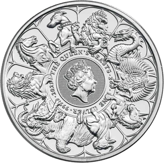 Die Münzserie „Queens Beasts“ wurde im Jahr 2016 herausgebracht und endete im Jahr 2021. Diese Silbermünze ist die finale Ausgabe der Serie. Aus diesem Grund ist die Motivseite auch mit allen zehn Biestern geprägt, die als Motive für die Münzserie ausgewählt wurden: Der Löwe von England, der rote Drache von Wales, der Greif von Edward III., das Einhorn von Schottland, der Schwarze Bulle von Clarence, der Falke von den Plantagenets, der Yale von Beaufort, der weiße Löwe von Mortimer, das weiße Pferd von Hanover, und letztlich der weiße Greyhound von Richmond.
