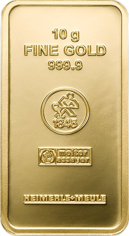 Exquisite Reinheit: 10 g Feingold mit 999,9/1.000, zertifiziert von Heimerle und Meule, Deutschlands ältester Goldscheideanstalt