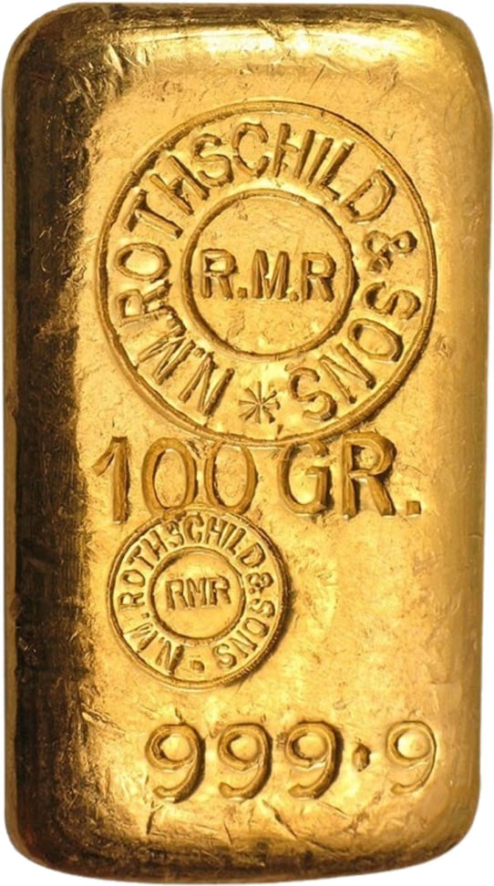 100 g Goldbarren Rothschild (mit Gegenstempel): Eine exklusive Investition in Geschichte und Stabilität