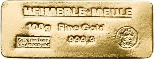 100 g Goldbarren Heimerle und Meule (Sargform)