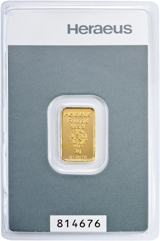 • Hersteller: Der 2g Kinebar® Goldbarren Heraeus wird von Heraeus, einem der weltweit führenden Edelmetallhersteller, hergestellt.