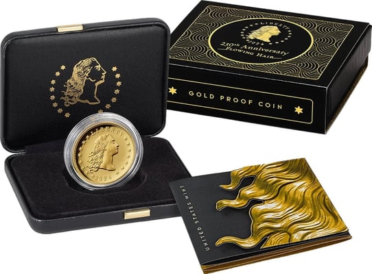 1 Unze Gold 230. Jubiläum American Liberty Flowing Hair 2024 PP (Limited Edition | Polierte Platte | High Relief)