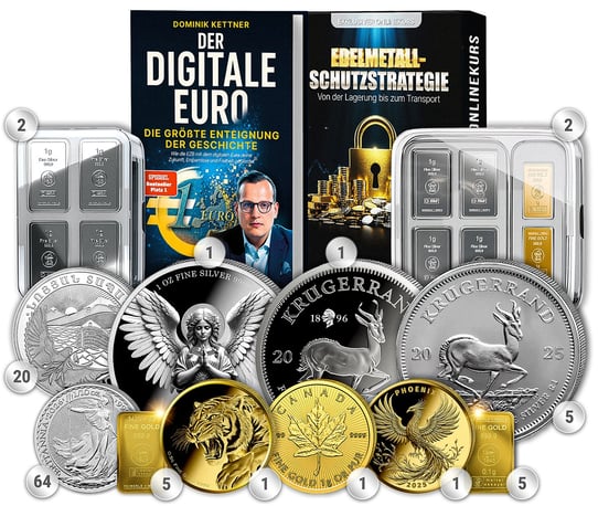 4. Zusätzliche Gratiszugaben: Handsigniertes Buch "Der digitale Euro" von Dominik Kettner, limitierte Sammlerausgaben in polierter Platte mit Auflagen von nur 2.500-5.000 Stück, professionelle Münzhandschuhe und Krisenschutz Boxen