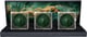 Die Münzen werden in einer eleganten schwarzen Box mit einem marmorierten Deckel in Grün- und Goldtönen präsentiert. Ihre Schönheit wird durch die transparenten quadratischen Kunststoffetuis, in denen jede Münze ruht, noch verstärkt. Sie ermöglichen es, die filigranen Details und die Farbpracht der Münzen aus jedem Blickwinkel zu bewundern.