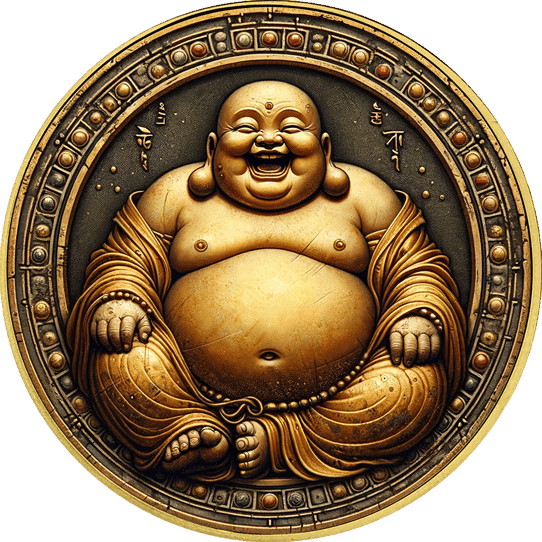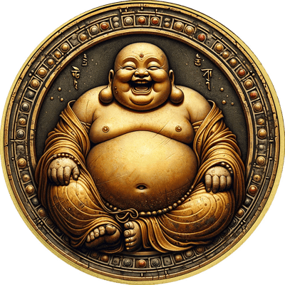 Mit einem Feingewicht von 31,10 g und einer Feinheit von 999,9/1.000 ist diese Silbermünze ein Exemplar reinsten Silbers. Doch ihre wahre Schönheit liegt in der aufwendigen Gestaltung: Die Vorderseite zeigt einen lachenden Buddha, dessen reliefartige Darstellung durch die colorierte und teilvergoldete Oberfläche eine beeindruckende Dreidimensionalität erhält. Der vergoldete Münzrand und die Schriftzüge fügen sich harmonisch in das Gesamtbild ein und unterstreichen die besondere Ästhetik dieses Sammlerstücks.