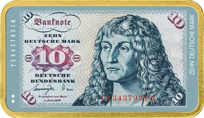 - Motiv: Detailgetreue Nachbildung des historischen 10-DM-Scheins mit kunstvoller Teilvergoldung