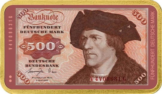 - Motiv: Detailgetreue Nachbildung des legendären 500-DM-Scheins mit historischem Portrait