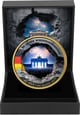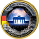 • Teilvergoldete Silbermünze zeigt Brandenburger Tor mit Feuerwerk zum 36. Jahrestag des Mauerfalls